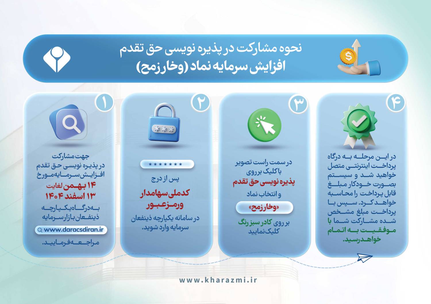 تمامی حقوق برای گروه سرمایه گذاری خوارزمی محفوظ و محتوای سایت تحت مجوز CC BY-SA 4.0 می باشد. / طراحی سایت توسط پارس فناوران
